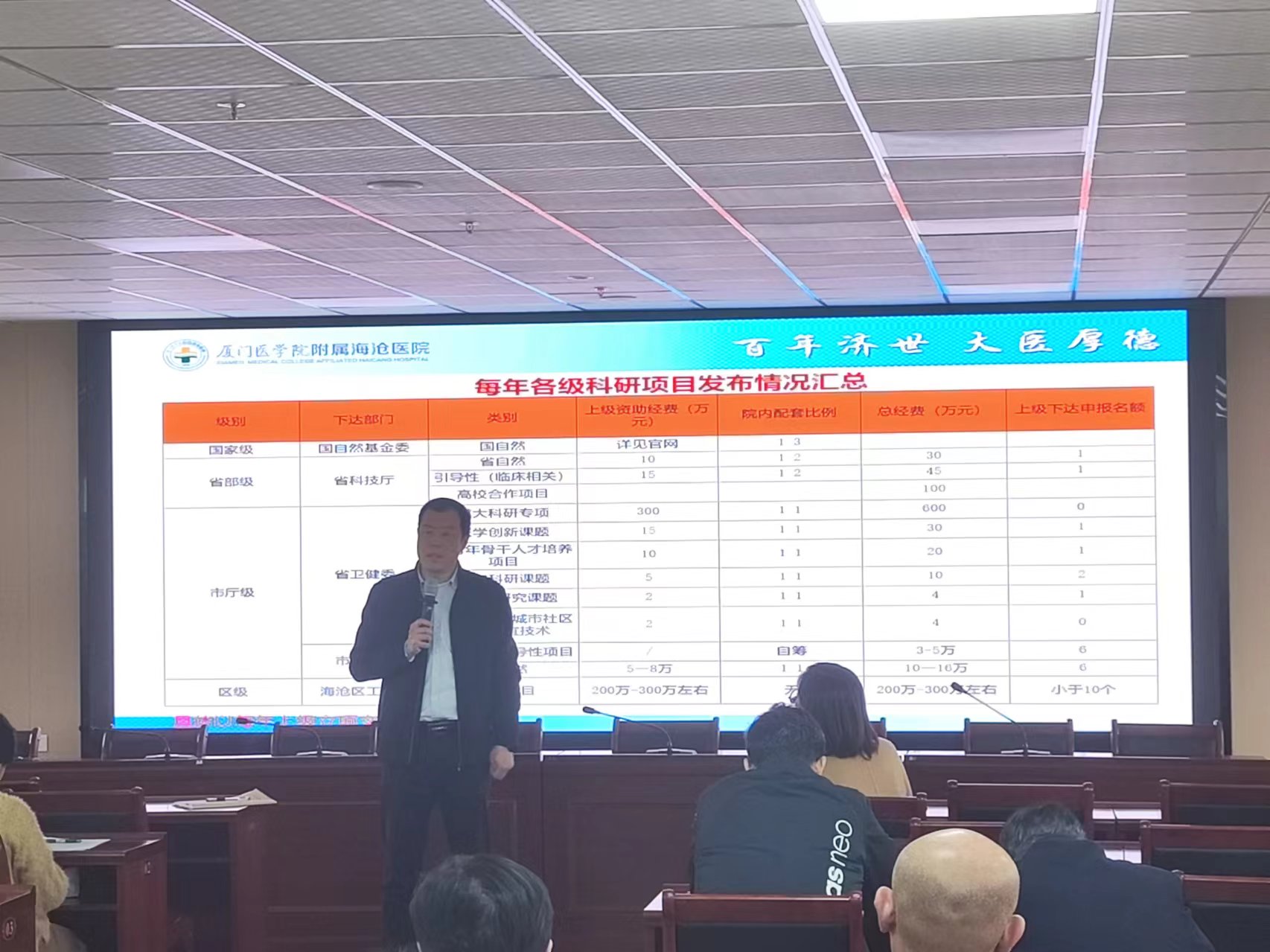 本次会议对金沙集团 近些年来基本情况、科研基本情况进行了介绍,金沙集团 科研数量和经费呈现逐年增长趋势,在国家公立金沙集团 考核和市属公立金沙集团 考核中都取得了不错的成绩。但仍存在高级别课题及高水平论文数量较少,科技成果奖、成果转化空缺且没有自己的实验室、生物样本库等不足。此外,会议也重点强调了科研过程中的注意事项及组织2024年各级科研预申报。